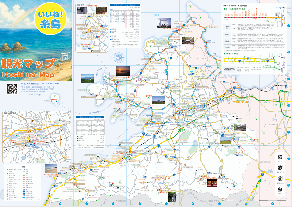 表面には、糸島市の観光スポットや店舗などの位置情報を、裏面には、主要観光スポットと表面に掲載されている店舗情報を掲載しています。糸島観光のお供にどうぞ!発行:2025年8月