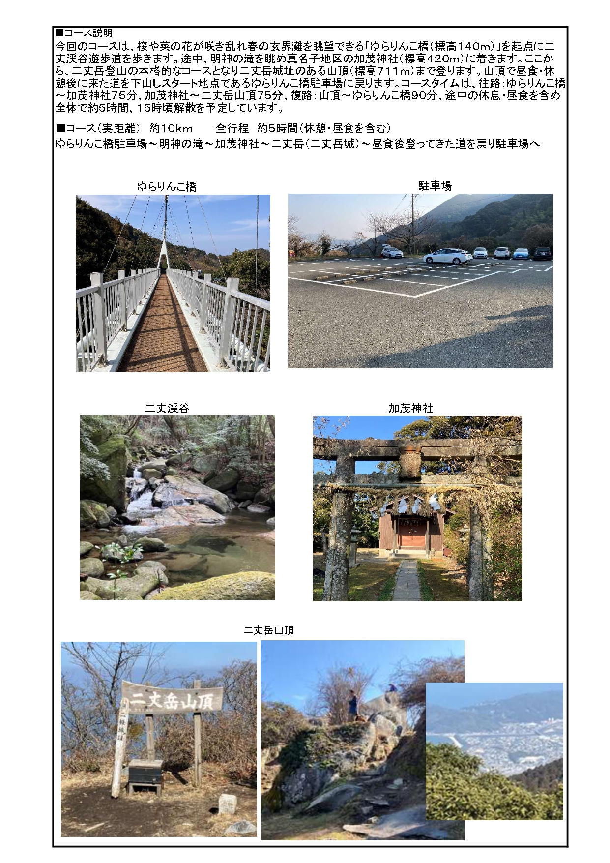 - 集合場所:加茂ゆらりんこ橋駐車場(福岡県糸島市二丈福井) Google Map