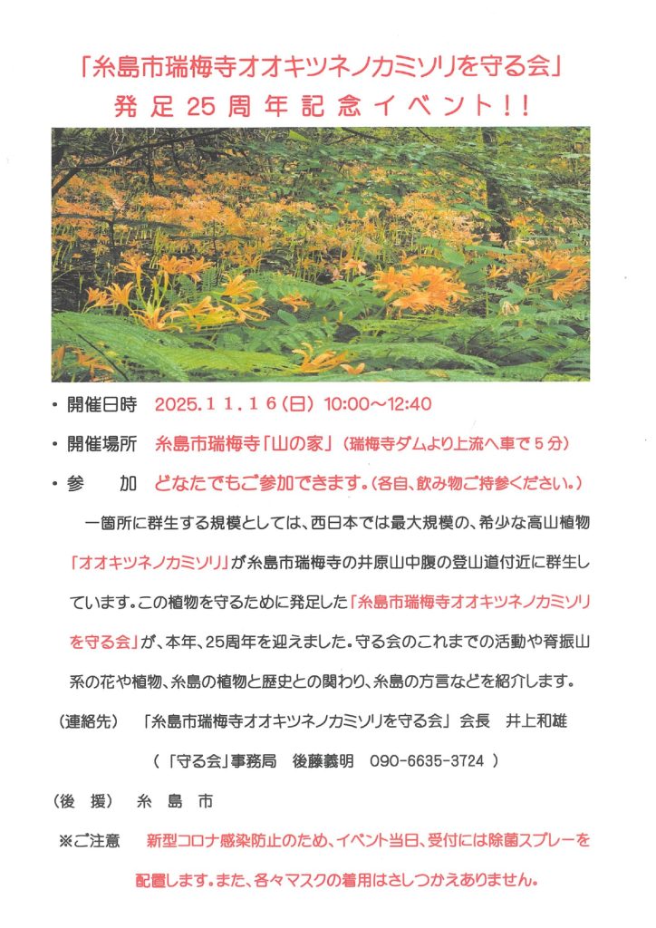 11/16「糸島市瑞梅寺オオキツネノカミソリを守る会」発足25周年イベント