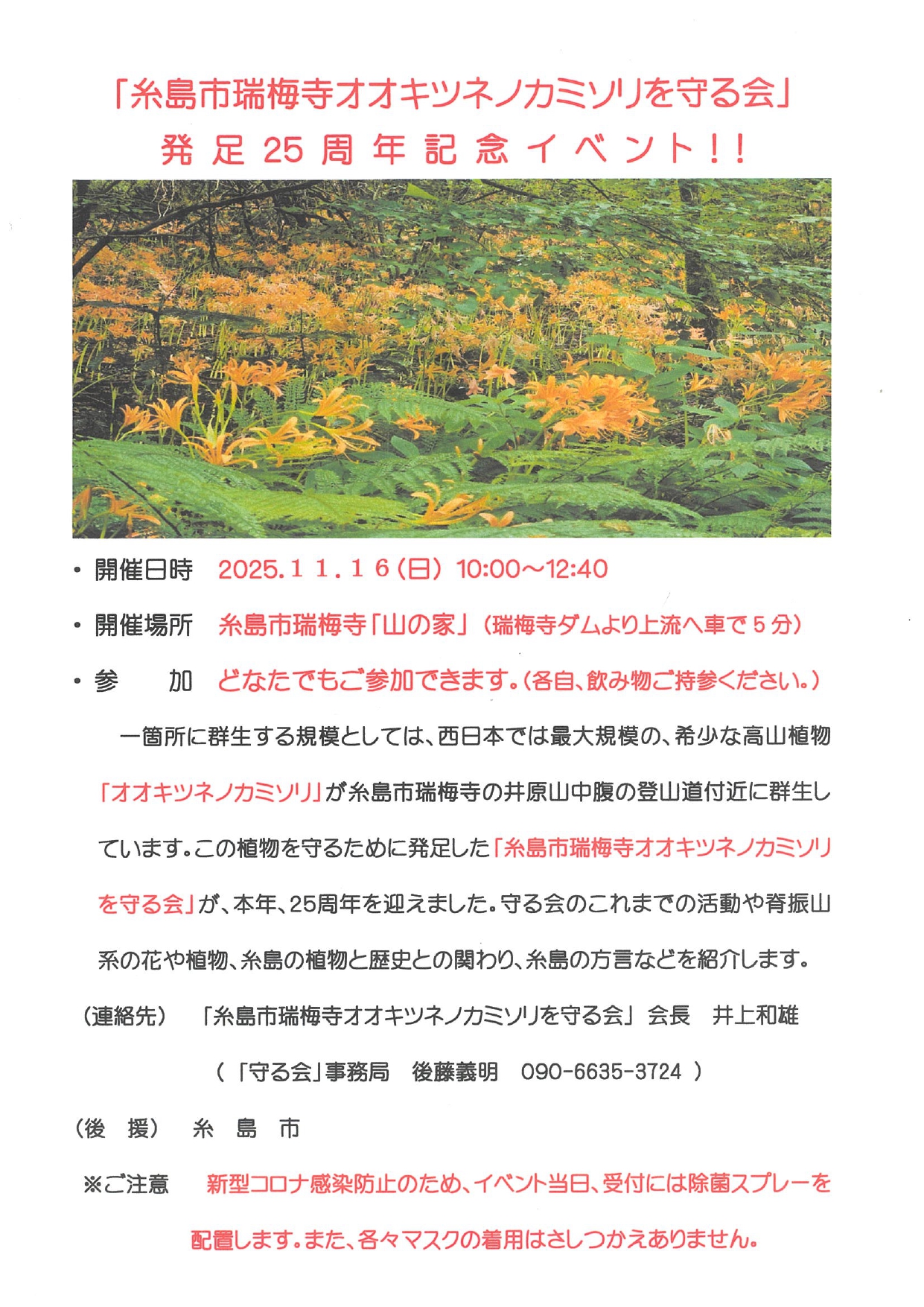 主催:「糸島市瑞梅寺オオキツネノカミソリを守る会」
