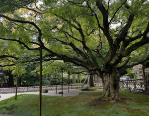 雷山千如寺大悲王院(糸島市雷山626)の境内には、福岡県の天然記念物にも指定される樹齢約400年の大カエデがあり、11月の紅葉時期には真っ赤に色づいてたくさんの参拝者が訪れます。