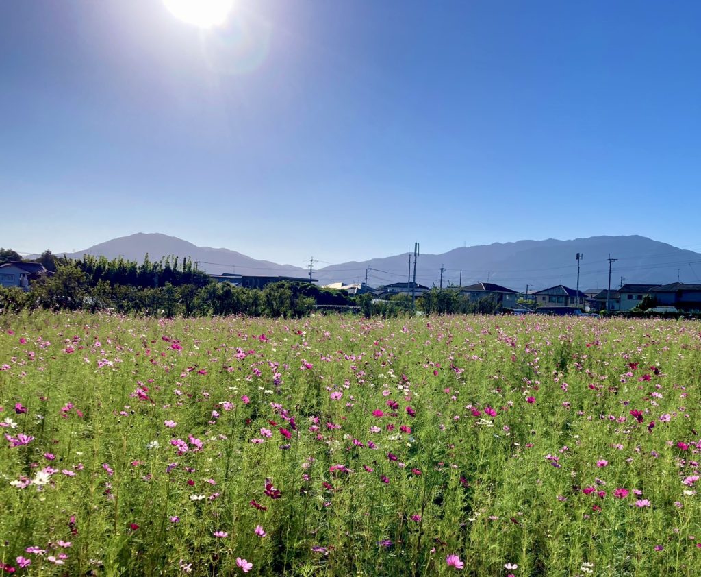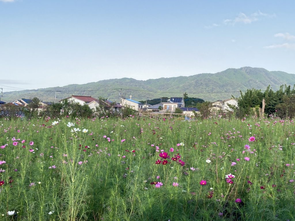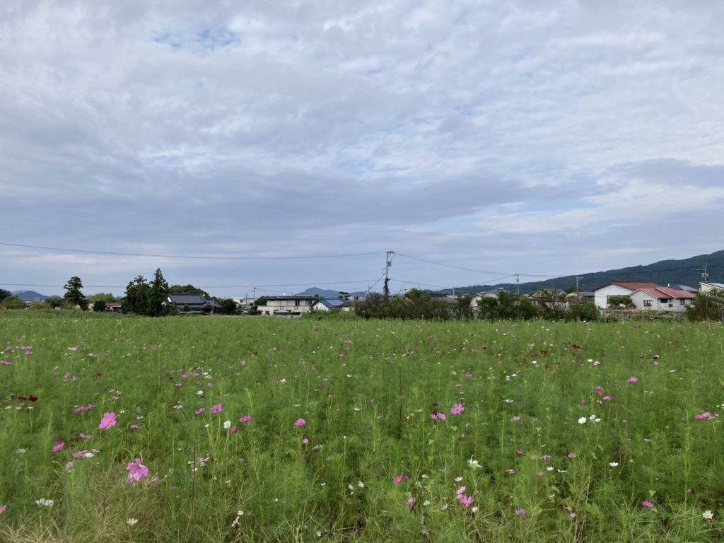 秋になると、地元の方々がみなさんに楽しんでもらおうと、周辺の田畑にコスモス畑を作られます。