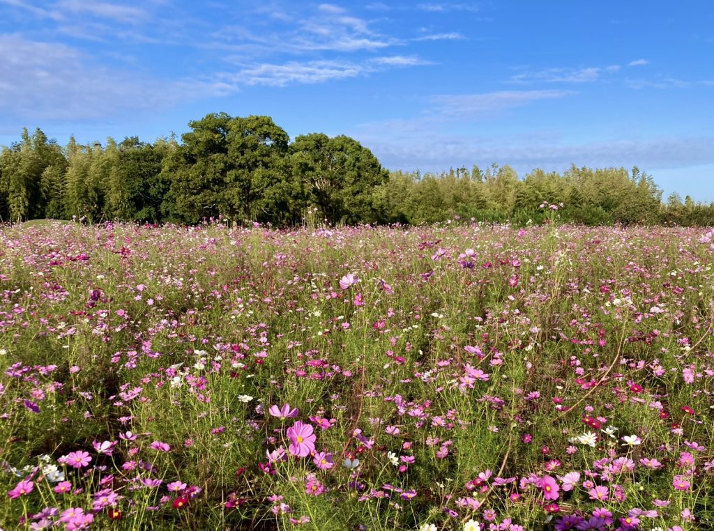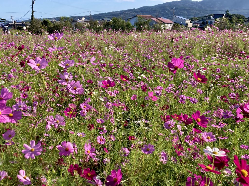 コスモスは8~9分咲きとなり、見ごろを迎えています。11月(日時未定)に刈り取りが予定されているため、観賞をご希望の方は10月中にお出かけください。